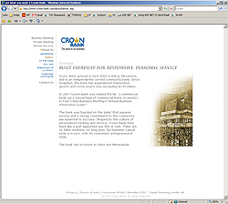 Founded in June 2000, Crown Bank has grown to more than $230 million in total assets by supporting the local business community. Crown Bank is a locally-owned, independent bank. In 2007 Crown Bank is ranked No. 1 among the top 25 "most aggressive commercial banks" in the Twin Cities Business Information Guide.