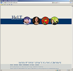 This Flash and HTML hybrid web site is based on the elegant Flash homepage.  The HTML content is simple and inline with HeLT's branding strategy.