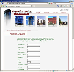 This is a Flash / HTML hybrid Web site highlighting the executive suite rental space and the business services provided. The site allows for the capturing of customer information and quote requests. An administrative system provides the ability to review and maintain the quote information as well as content on the rental locations.